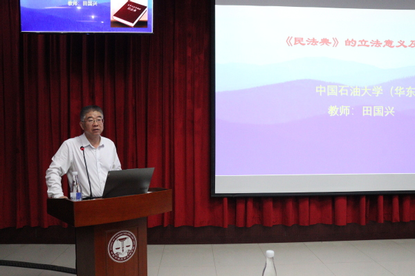 活动伊始,主持人王璐瑶介绍本次活动的目的及学习民法典的重要性,并简要介绍本次讲座的主讲人田国兴老师。接下来,田国兴老师以“《民法典》的立法意义及逻辑结构”为题,从《民法典》制定的必要性、我国《民法典》的前世今生、我国《民法典》的逻辑结构三个方面展开介绍。