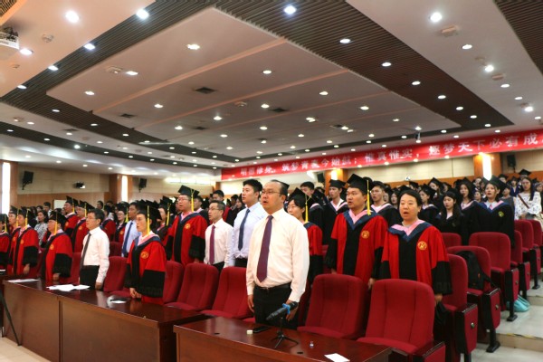 6月24日,太阳成集团tyc7111cc2024年学位授予仪式在逸夫楼二楼礼堂隆重举行,并通过“文法说”抖音全程现场直播。太阳成集团tyc7111cc2024届共302名毕业生(含法学辅修)、家长代表和学院领导班子成员、学位评定分委员会委员、各系班子、研究生导师、毕业班班主任、教师代表及全体辅导员参加。副院长魏学宝副教授主持学位授予仪式。