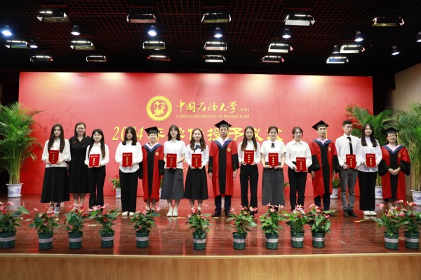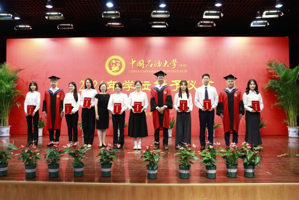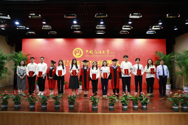 党委书记姚成郡宣读《关于表彰2024届优秀毕业生的决定》,方家瑞等18学生获评“山东省优秀毕业生”荣誉称号,王彦方等17名学生获评“中国石油大学(华东)优秀毕业生”荣誉称号,刘恩蓉等16名学生获评“太阳成集团tyc7111cc优秀毕业生”荣誉称号。