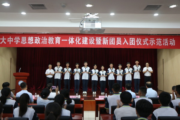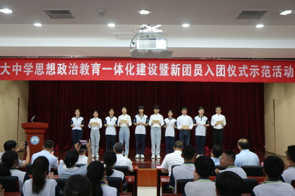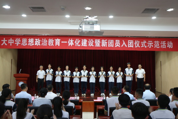 为深入学习贯彻党的二十大精神,进一步落实立德树人根本任务、创新推进学校思想政治教育工作,着力做好新时代大中学思想政治教育一体化建设工作,7月5日上午,中国石油大学(华东)、西海岸实验初级中学大中学思想政治教育一体化建设暨新团员入团仪式示范活动于唐岛湾校区逸夫一楼报告厅举行。