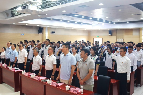 仪式在庄严的中华人民共和国国歌中拉开帷幕。苏洋洋宣读新发展团员名单,万福光、季林海为新团员颁发团员证。全体新团员进行入团宣誓。朝气蓬勃的面庞,铿锵有力的誓言,彰显了新时代青少年奋发向上的精神面貌和昂扬斗志。