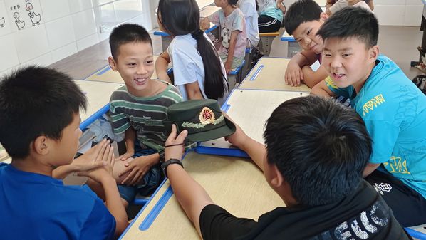 2024年8月1日,经支教队筹备,在各班班主任的组织下开展国防教育主题班会。负责人联线中国石油大学(华东)国旗护卫队队长,为孩子们做“国家、国旗、国歌”主题讲座,并展示护卫队日常训练和礼仪。通过了解国旗护卫队这一学校爱国主义教育的重要载体,增强了同学们的民族自尊心和自豪感,让学生更加了解国家的历史和文化,激发了他们的爱国热情和社会责任感。支教队队长沈舒作为护卫队中的一员,身着常服,为孩子们讲解建军节的历史与中国的军种。