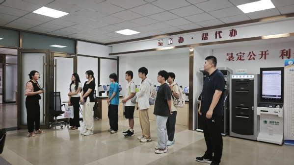 在讲解员的带领下,队员们参观了杨庙社区便民服务站,站内多功能扩展柜、自助服务终端等智慧设备为便民服务提质增效。在展馆内,队员们了解了杨庙社区充满艰辛的发展历程。过去的南展区,群众必须在防洪时期搬到大堤房台上生活,房屋紧缩;随着人口增加,老房台区逐渐无法适应群众的生活需要。十八大以来,东营市决定实施黄河南展区村庄搬迁改造工程,规划建设董集镇杨庙社区,自此,黄河南展区实现了从传统落后农村到生态宜居新社区的转变。如今的杨庙社区实行集中供暖、天然气入户、污水集中处理,并配套建有各种公共服务设施,村民们的幸福之情溢于言表。从当年受制于天灾的黄河南展区,到如今的欣欣向荣的全国模范村镇,再到未来全面发展的新型乡村社区,杨庙社区居民的生活蒸蒸日上。