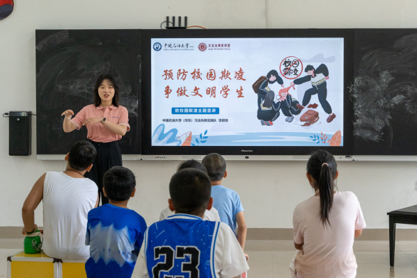从基础芭蕾站姿开始,实践队员拆解舞蹈动作并耐心讲解,指导孩子们掌握动作并展示学习成果。实践队开展校园霸凌普法课,通过互动问答、小组讨论、案例讲解、角色扮演,介绍了校园霸凌的概念、形式及应对方法,提升了孩子的法律意识和自我保护能力。