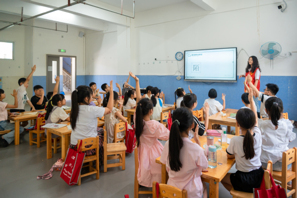 实践队队员在给小朋友上课