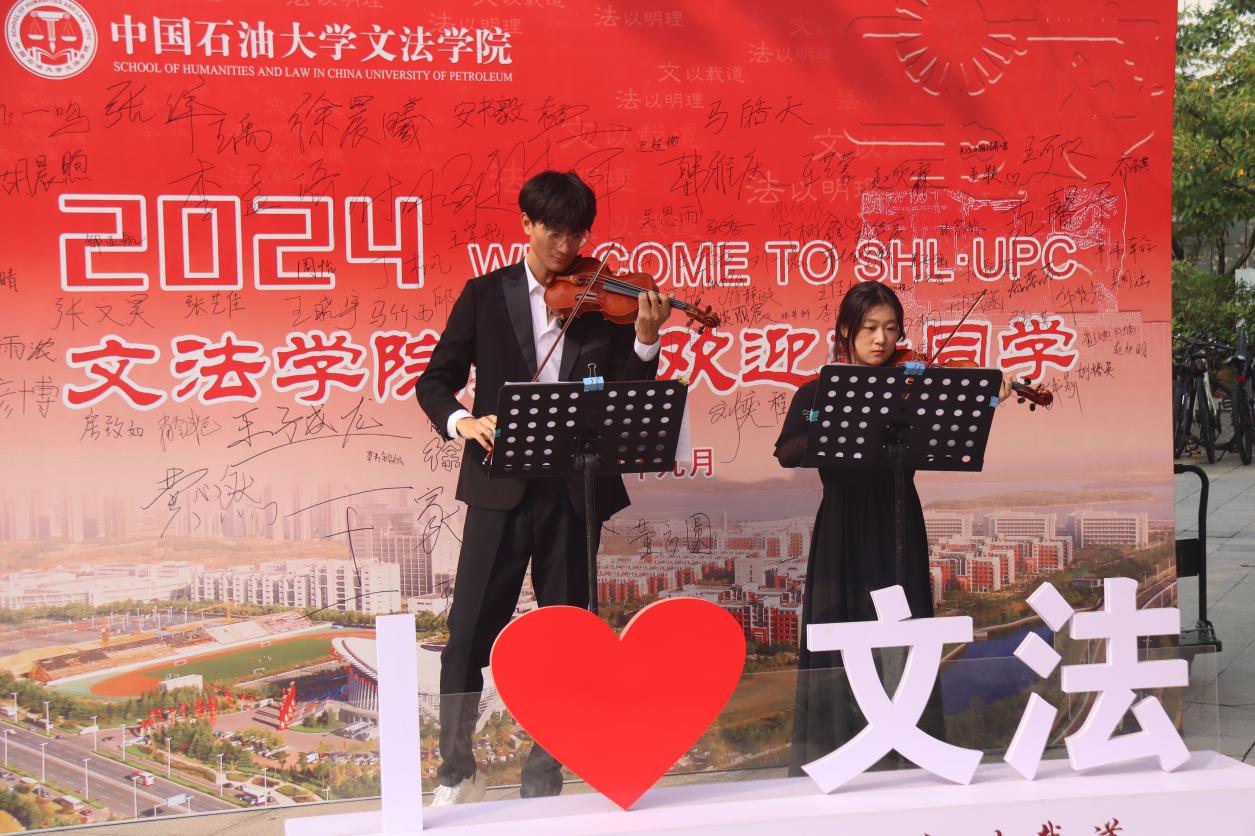 学院音乐学专业的学子们,在学院的迎新现场,纷纷拿起乐器,倾情演绎。从激昂高亢的旋律到深沉低回的曲调,从热烈如火的激情到温柔似水的旋律,一首首乐曲交织成美妙的乐章,为新生及家长们呈上了一场难忘的音乐盛宴。