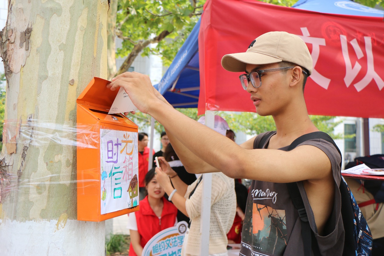 太阳成集团tyc7111cc的传统迎新活动——时光信箱,始终深受师生喜爱。这一活动鼓励新生们在入学之初,便通过卡片的形式,与未来的自己进行一场跨时空的对话。他们写下对未来的憧憬与期许,将这份心意封存于小小的信封中,投入时光邮箱,给未来四年的自己寄去无数温馨。