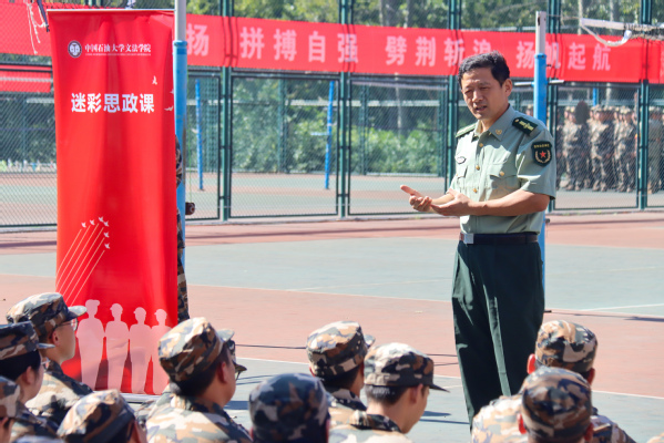 “迷彩思政课”第一讲,由学校党委学生工作部(武装部)李令功老师担任主讲人。训练场上,李令功老师声情并茂地讲述了中国共产党的光辉历程和革命先辈的英勇事迹,激励新生们继承和发扬红色精神,并将这种精神转化为学习和生活中的强大动力。他强调,作为新时代的大学生,新生们不仅要在军训中锻炼身体,更要在思想上得到升华,将红色精神内化于心、外化于行。“这堂迷彩思政课,让我深刻感受到了革命先辈们的不易和伟大。”汉语言文学2402班张文昊分享道,“尤其是听到那些年轻战士的事迹,我感到自己的青春也应该像他们一样,充满奋斗和奉献。”