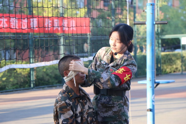 下午,学生们在教官的带领下准时到达训练场集合。教官就心肺复苏、海姆立克等自救方法进行知识普及,军训助理寇亚迪现场演示头部、双眼、单眼、肩部、胸部和小臂六个部位的急救包扎方法,以增强学生安全意识,提高救护能力。学生们认真聆听,积极配合,并两人一组主动参与到实操当中。活动结束后,文法学子纷纷表示对救护知识有了更加全面系统的认识,受益匪浅。