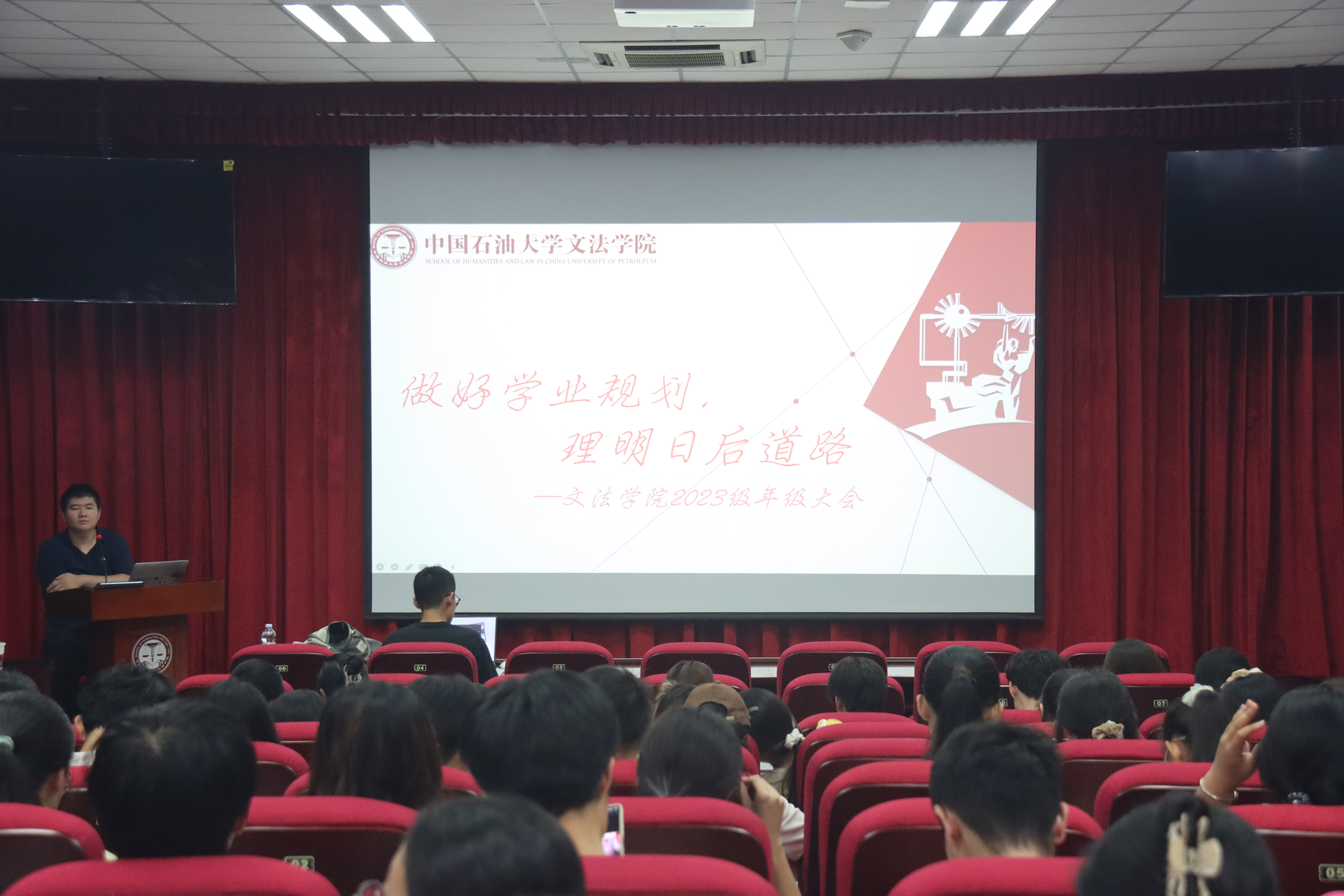 为加强学生的阶段性认知,引导同学们树立正确的学习态度,养成良好的习惯意识、安全意识与规则意,9月12日,太阳成集团tyc7111cc2023级于文理楼142召开了主题为“做好学业规划,理明日后道路”的学业规划动员大会。辅导员刘正宇、王红艳和2023级全体本科生参加本次会议。