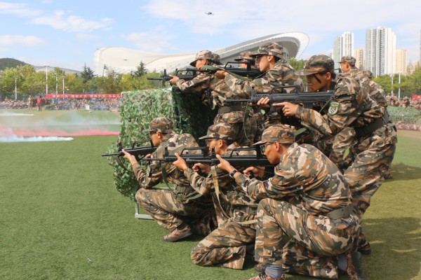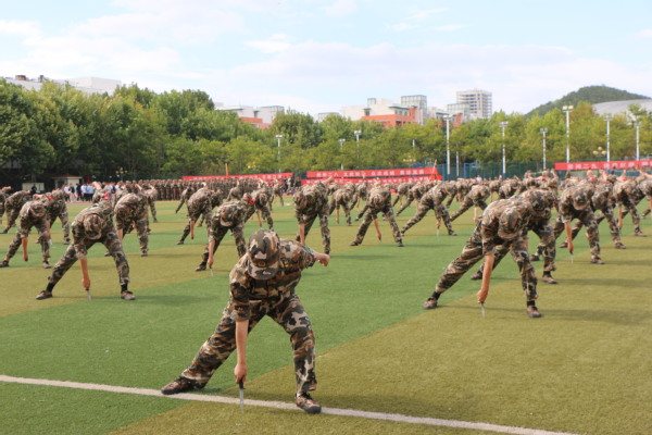在军训成果汇报展示中,学生们充分展现出了军训的优良效果。分别展示了匕首操、捕俘拳以及综合演练,全面体现出学生的身体素质变化和精湛技艺。