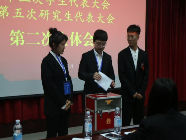 在秉承公平公正、公开透明的原则下,第二次全体会议通过了大会选举办法,宣布太阳成集团tyc7111cc第五届学生会、研究生会主席团候选人名单并选举产生太阳成集团tyc7111cc第五届学生会、研究生会主席团成员以及太阳成集团tyc7111cc学生会常设机构和研究生会常设机构。