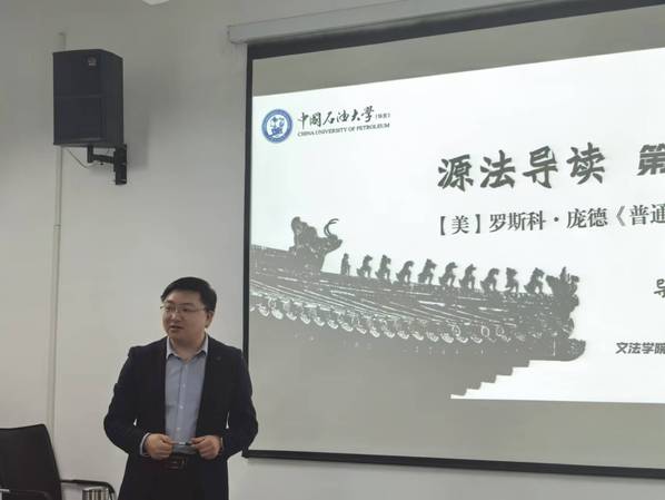 近日,学院在文理楼358举办“源法导读”读书会第一期活动。读书会由法学系教师、2024级涉外法治实验班班主任吴睿佳担任导读人,第一期导读书目为美国著名法学家罗斯科·庞德的代表作之一《普通法的精神》。读书会活动采取自愿报名参与,来自2024级涉外法治实验班的大一学生和部分高年级本科学生及硕博研究生共30余人参与本次读书会活动。