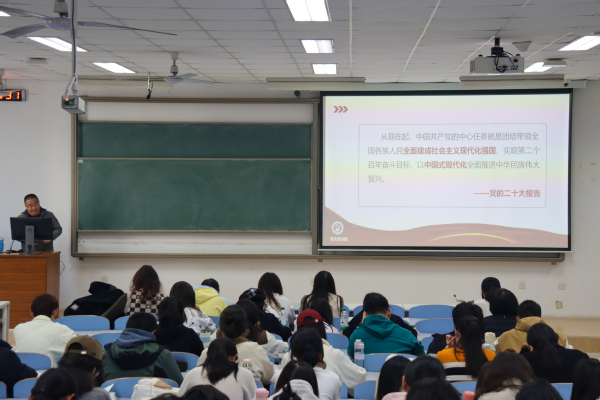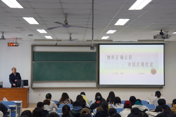 陈熙就题为“如何正确认识中国式现代化”展开讲解。在课程伊始,陈熙便强调了中国式现代化对于中国乃至世界发展的重要意义,并深入阐述了中国特色在中国式现代化中的体现。陈熙通过列举大量实例,指出中国式现代化是一项伟大而独特的事业,既具有各国现代化的共同特征,更有基于自身国情的鲜明特色。在这一进程中,青年肩负着重大使命与责任。新时代的青年生逢其时,施展才干的舞台无比广阔,应高扬理想风帆,听党话、跟党走,把个人命运与祖国前途紧密相连;要能吃苦、肯奋斗,在治学前沿、生产一线等不同领域苦练本领、增长才干;还需敢担当、善作为,在各自的岗位上贡献青春力量,将个人奋斗融入民族复兴的时代伟业,让蓬勃青春与家国情怀同频共振,以青春之我、奋斗之我,为中国式现代化的推进添砖加瓦,书写挺膺担当的青春篇章。