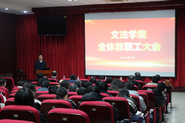 1月10日,学院在文理楼142举行全体教职工大会,大会由学院党委书记姚成郡主持,学院全体教职工参加会议。