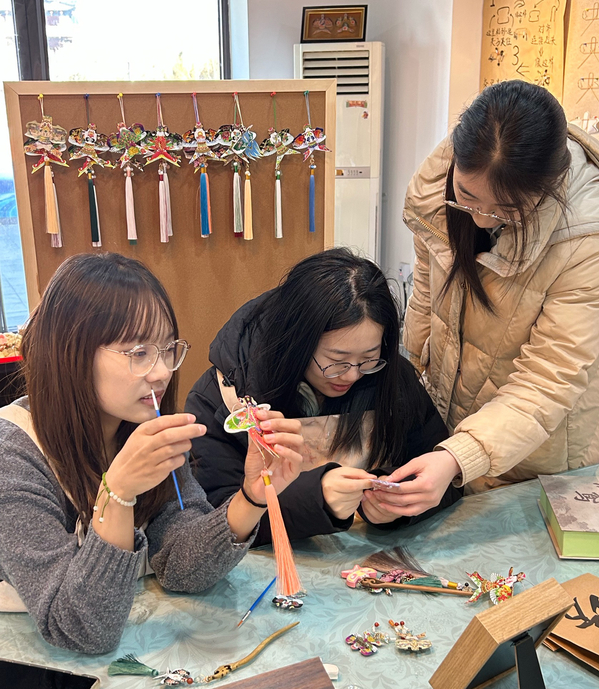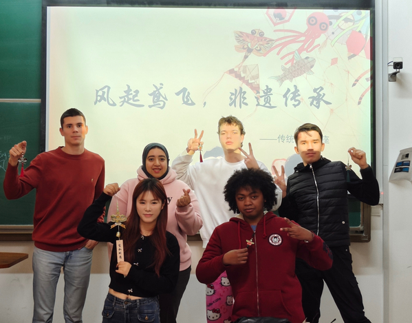 讲座结束后,留学生们还亲手体验了风筝的制作过程。他们手持竹篾、彩纸和丝线,在队员们的指导下小心翼翼地拼凑、粘贴、绑线。当看到自己亲手制作的风筝缓缓升空时,留学生们的脸上洋溢着喜悦和自豪的笑容。这次讲座不仅为留学生们提供了一次难忘的非遗文化体验之旅,也为风筝文化的国际传播搭建了友谊的桥梁。