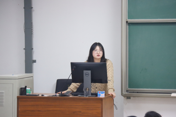 接着,针对学生关切的升学与职业规划问题,杨倩、陈旺以数据为支撑、以榜样为引领,逐一解答。对于考研自习室名额分配,杨倩详解流程;对于升学规划,她结合往届具体数据展开分析。陈旺重点补充道,职业选择需结合“职业热情与自我认知”,并引用马克思名言引导学生理性思考,避免理想化倾向,鼓励“多条腿走路”。