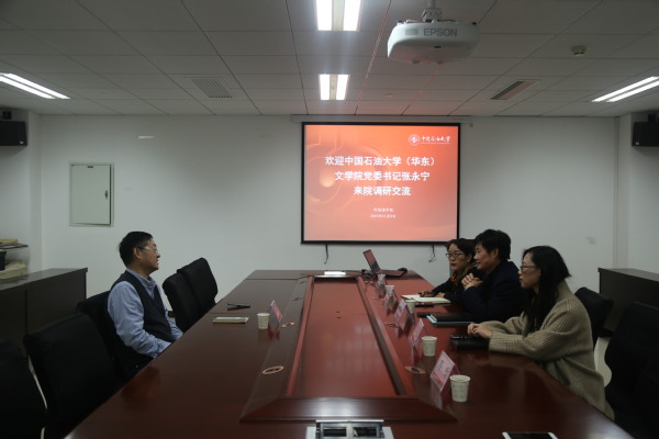 11月8日,文学院党委书记张永宁赴中国石油大学(北京)外国语学院,就开展“不忘初心、牢记使命”主题教育进行专题调研交流。中国石油大学(北京)外国语学院党委书记李玉财主持座谈会,院长赵秀凤、副院长徐方富、崔亚霄、党委副书记邓听参加座谈。