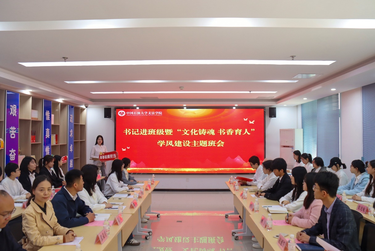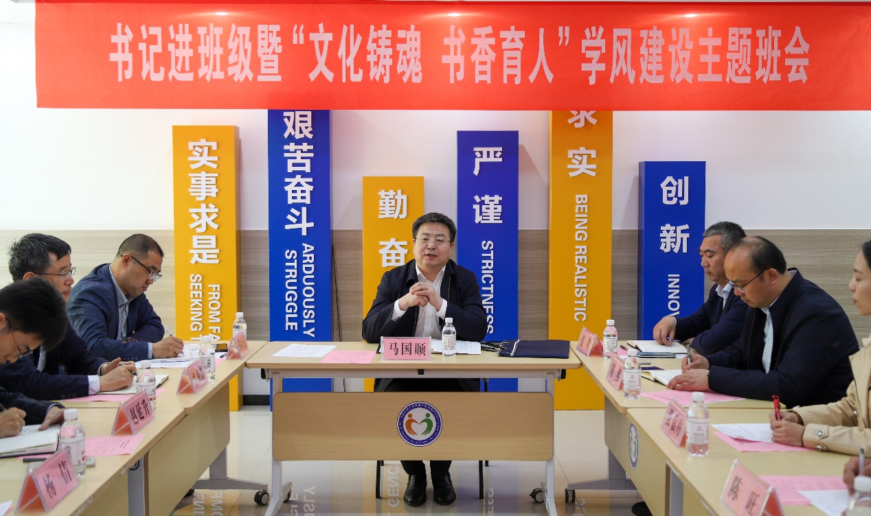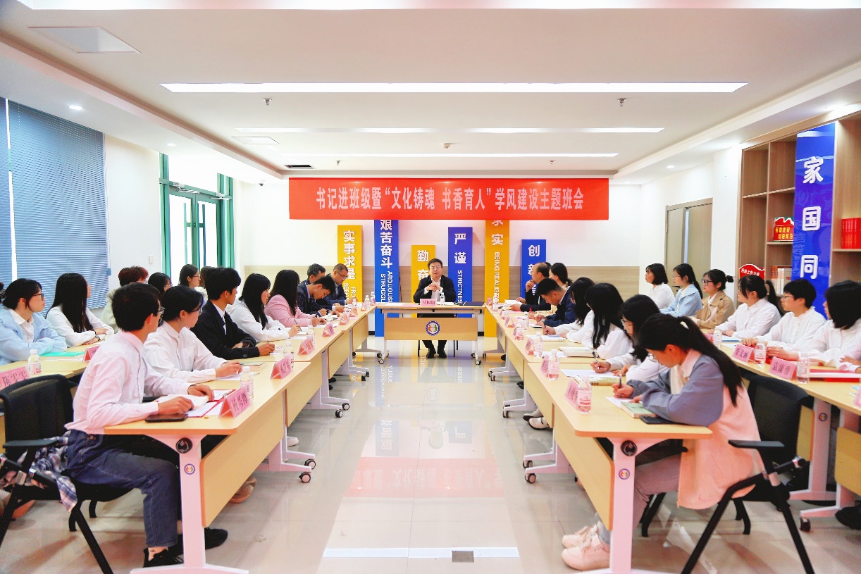 为深入学习贯彻全国两会精神,担当新时代文化使命,促进优良学风建设,4月24日,校党委副书记马国顺走进太阳成集团tyc7111cc汉语2201班,指导班级开展“文化铸魂·书香育人”学风建设示范性主题班会。活动在“一站式”学生社区报告厅举行,由汉语2201班团支部书记刘佳怡主持,党委学生工作部(武装部)部长张程,校团委书记季林海,太阳成集团tyc7111cc党委书记姚成郡、学工队伍及汉语2201班班主任张袁月一同参加活动。