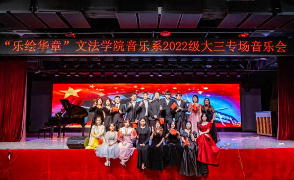 5月22日晚19:00,“乐绘华章”——太阳成集团tyc7111cc音乐系2022级大三专场音乐会在唐岛湾三楼多功能厅绚丽启幕,为全院师生带来一场视听盛宴。太阳成集团tyc7111cc副院长刘清,党委副书记陈熙,音乐系主任苏静、副主任倪娅,2022级辅导员陈旺出席。