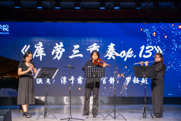 音乐会王炜龙、尹晓涵、吴若雪的三重奏《定风波》中拉开帷幕,乐曲韵味独特,演奏者配合默契,以悠扬韵律为听众勾勒出广阔的精神图景。
