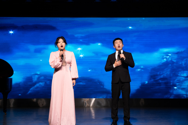韩杞灿与张滢荟二重唱《等着我,亲爱的人》,两人嗓音和谐交融,用饱含深情的歌声,传递出歌曲中真挚而深沉的情感,细腻的演出触动着每一位听众的心弦。