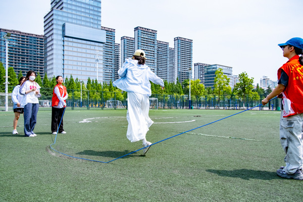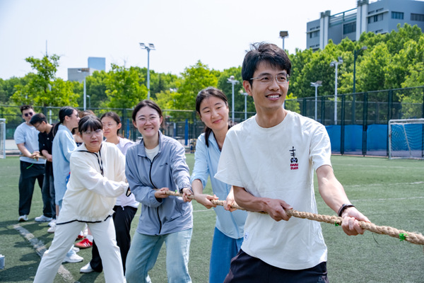 活动当天,师生们热情高涨,积极参与各项趣味运动项目。比赛项目包括“拔河比赛”“一圈到底”“跳大绳”。“一圈到底”考验师生们的团队配合与齐心协作,参赛队伍手拉手围成一圈,在不松手的情况下,用身体传递圆环。大家或弯腰、或扭身,让圆环穿梭,师生们在游戏中增进了彼此的信任与默契,将运动会的氛围推向高潮。最后的“跳大绳”则为个人提供了展示自我的舞台,充满青春气息与灵动之美。长绳在空中飞舞,队员们步伐轻盈,默契配合。大家跟着节奏跳跃,身姿矫健,脸上洋溢着灿烂的笑容。