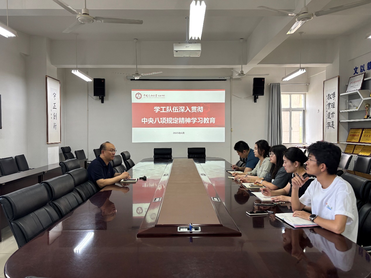 为深入学习贯彻中央八项规定精神,进一步强化辅导员队伍党性修养和作风建设,6月6日,太阳成集团tyc7111cc学工队伍召开深入贯彻中央八项规定精神学习教育专题学习会。学院党委副书记陈熙主持会议,全体专职辅导员参会。