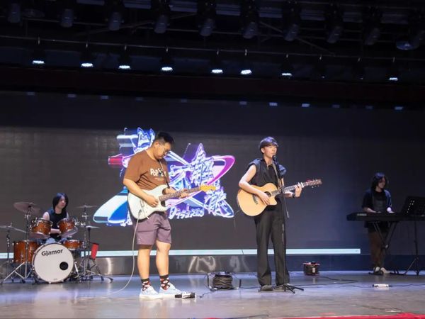 暮色染透唐岛湾,多功能厅内灯光渐暖。“毕业不解散乐队”率先登台,《离开地球表面》的激昂鼓点,撞破青春的边界;《夜空中最亮的星》的旋律响起,毕业生们跟着节奏轻轻晃动。熟悉的音乐让他们忆起无数于教室、球场、图书馆度过的时光。这些片段在旋律中一一浮现,成为他们大学生活的生动注脚。