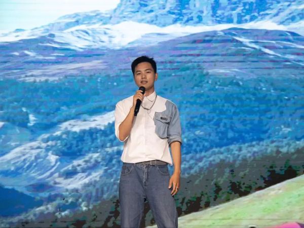 汉硕2201班徐浩辉独唱《天边》,清澈歌声如流云舒展,勾勒出毕业生对远方的憧憬。