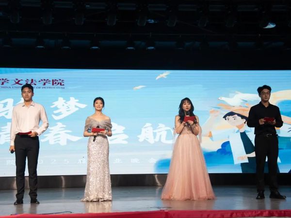 当最后一幕舞姿定格,灯光渐暗,掌声仍在回荡。这场晚会,是告别,更是新章序笔。四年石光驻梦,今朝青春启航,2025届毕业生将携着回忆,念着笑泪,奔赴下一场山海。祝2025届全体毕业生:所求皆坦途,所行化春风,所遇皆美好,前路皆繁花!盼你们常忆唐岛湾畔的星光,常念文法时光的炽热,一路生花,不负此程!