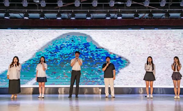 音乐2101白雨轩、孙凯俊、乔薇静、杜彩霞、王思晗、亓佳姝合唱《我们的明天》,和声交织间,“明天”不再抽象。他们眼神里的光,映着舞台,也映着2025届毕业生的未来,晚会成为青春新途的起点。