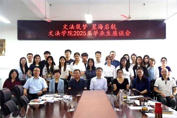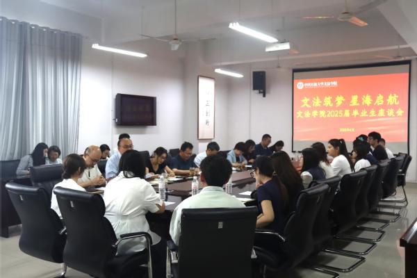 6月13日,学院举行“文法筑梦·星海起航”2025届毕业生座谈会。会议由党委副书记陈熙主持,学院班子成员、各系主任及党支部书记、毕业班班主任、各系教师、毕业班辅导员与毕业生代表参加。
