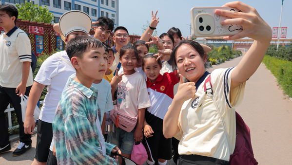 实践队成员与学生合影 季粟萍摄