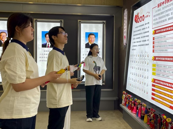 展馆内的实物展示区,同样藏着发展的密码。老式的办公用具、手写的工作记录,见证了基层工作从简单到规范的转变;曾经用于发布通知的设备,如今已被高效便捷的数字化社区服务平台替代。在“民族团结进步”主题展区,队员们驻足于蒙汉群众共同劳作、共同发展的影像资料前。实践队队员邢芸菡深有感触地说:“这些影像里的每一个场景,都是党带领各族群众团结奋斗的生动体现。正是这份团结,让科左后旗有了如今的发展面貌,也让我们对‘砥砺奋进’有了更真切的理解。”