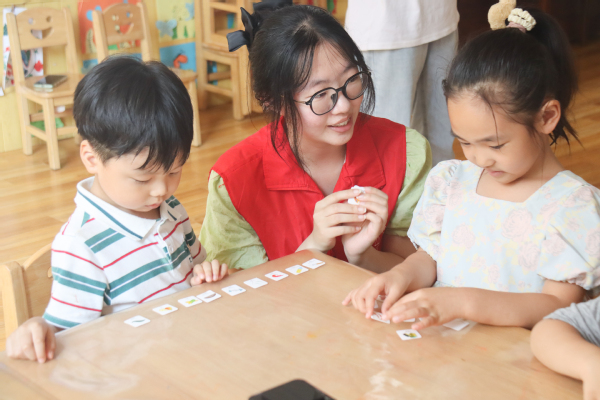 互动提问环节,小朋友们踊跃发言,分享了他们眼中的环境问题以及这些问题的成因与根源,展现出孩童视角对环境保护的浓厚兴趣和独特见解。伴随活动气氛愈发热烈,一场妙趣横生的小游戏正式开启。小朋友们分成两队,每人手持五六张卡片,模拟投放垃圾小纸片。队内展开激烈比赛,看谁的垃圾分类准确率更高。在游戏中,小朋友们不仅加深了对垃圾分类知识的理解,更在欢声笑语中体会到了团队合作的乐趣。