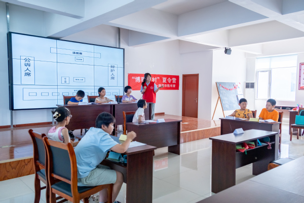 法舟童航志愿服务队采用“以案释法”的形式,让孩子们在沉浸式的模拟法庭角色扮演中感受法律威严,强化自我保护意识。