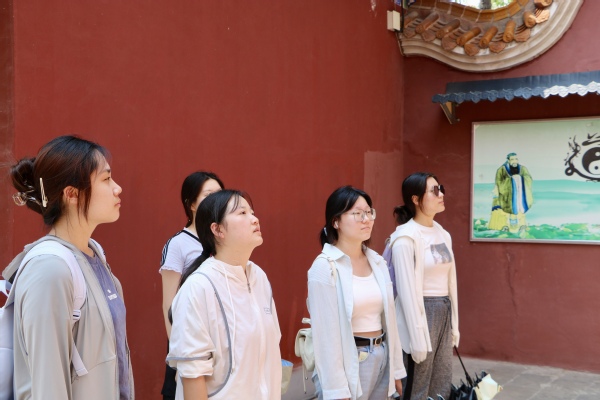 调研当日,队员们深入核心区域——金斗山道观,细致观察其独特的建筑形制、空间布局与周边生态环境的和谐共生关系,并与驻观人员进行了深入交谈。通过口述史采集与现场勘察相结合的方式,队员们系统梳理了道观的建筑沿革,精确记录下其肇建、鼎盛及历次关键修缮的历史节点,勾勒出这座古老建筑在时间长河中的沧桑变迁轨迹。