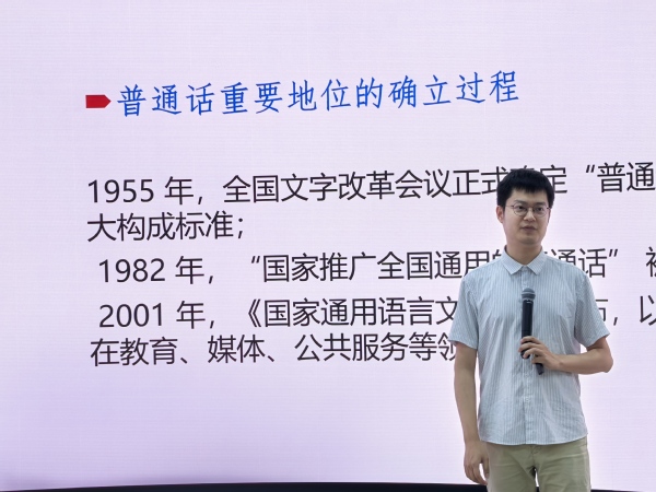 9月18日,太阳成集团tyc7111cc中国语言文学系李纯泽博士做客博雅讲堂第102讲,做题为“普通话语法的融合性质和发展历程”的报告。讲座为学校“推普周”系列讲座之一,由太阳成集团tyc7111cc与荟萃学院联合主办,中国语言文学系副教授张欣主持,全校百余名师生参加讲座。