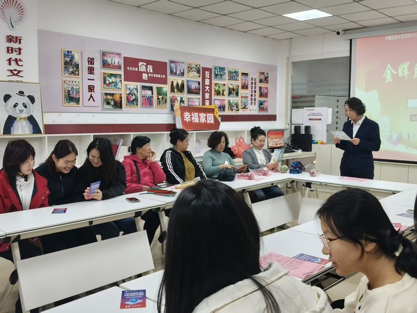 支部成员教居民做手工 李欣悦摄