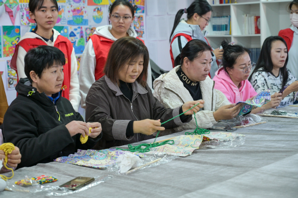 在艾草养生锤制作环节,从填充艾草到捆扎成型,支部成员们耐心讲解、细致协助。小小的养生锤不仅承载着传统养生智慧,更凝结着两代人协作的温情。老人们兴致盎然,在动手实践中感受传统文化的魅力。多位老人表示,将把这份充满心意的艾草锤用于日常保健,舒缓疲劳。