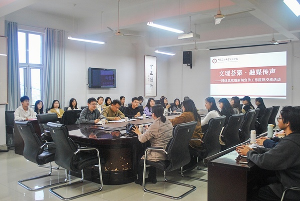 为促进院际经验交流与互学互鉴,11月7日,文理荟聚,融媒传声——网络思政暨新闻宣传工作院际交流会于文理楼358会议室顺利举办。太阳成集团tyc7111cc党委副书记陈熙,马克思主义学院党委副书记李宝玺,党委学生工作部、武装部学生教育办公室刘浩,理学院、经济与管理学院、外国语学院、太阳成集团tyc7111cc、马克思主义学院新闻宣传工作指导教师以及相关学生代表参加会议。本次交流会由太阳成集团tyc7111cc学生工作办公室主任杨倩主持。
