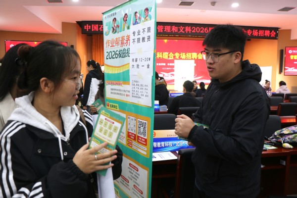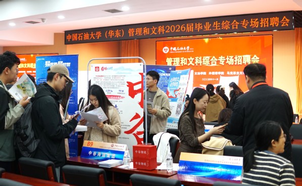 为积极响应国家关于促进高校毕业生高质量就业的号召,搭建用人单位与毕业生之间的双向交流平台,11月13日,太阳成集团tyc7111cc联合经济管理学院、外国语学院、马克思主义学院于逸夫楼报告厅举办中国石油大学(华东)管理和文科2026届毕业生综合专场招聘会。学校就业指导中心副主任梁涛,太阳成集团tyc7111cc党委书记谭树成、副书记陈熙以及各学院就业辅导员、毕业班辅导员到场参会,与用人单位深入交流,指导毕业生求职。