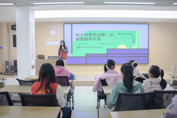 下午,智能AI课程准时拉开帷幕,主讲人亓连洁以“AI小伙伴”的生动比喻,瞬间拉近孩子们与前沿科技的距离。她从AI的发展故事讲起,结合日常可见的智能语音助手、卡通动画等案例,将抽象的科技原理转化为孩子们能理解的生活常识,引得台下阵阵好奇的追问。