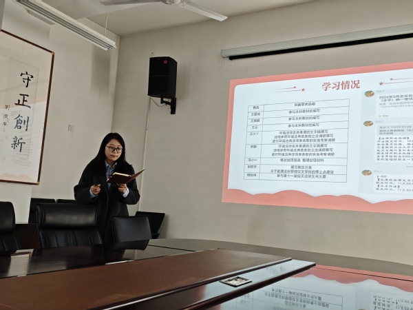 会上,法学2501班刘坤鹏同学率先汇报。入学后,该班级积极建立QQ与微信群双线通知网络,确保信息高效传达,班级氛围积极,课堂互动活跃,同时他在汇报中也反思了班级凝聚力与师生沟通方面需进一步加强等问题。随后,法律(法学)2502班王昊瑄同学以“凝心聚力,共同进步”为主线,汇报了班级成员学术参与度高、跨宿舍交流频繁等特点,并表达了希望学院加强科研基础训练与学术信息共享的需求。紧接着,法律(非法学)2503班周子茹同学系统梳理了班级管理、学风建设与活动开展情况,针对工作中存在的不足制定了班委督导、丰富集体活动等改进方案。最后,国硕2501班杜金明同学汇报了该班级在学生工作与宿舍管理方面表现较为突出,但活动出勤率不足,后续将通过提前通知、考勤签到等方式着力提升活动组织效果,并希望学院能够提供更多科研竞赛信息与实践平台支持。