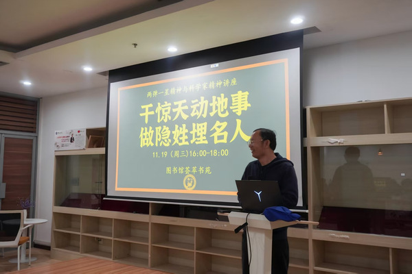 为弘扬爱国主义精神和科学家精神,11月19日,太阳成集团tyc7111cc星火燎原(石大)宣讲团联合学校图书馆、红学研究协会,于荟萃书院举办“隐姓埋名,为国铸剑——‘两弹一星’元勋的信仰与担当”主题分享会。此次活动由宣讲团负责人付冰冰主持,理学院刘超卓副教授主讲,带领学生一同回望共和国不平凡的奋斗历程。