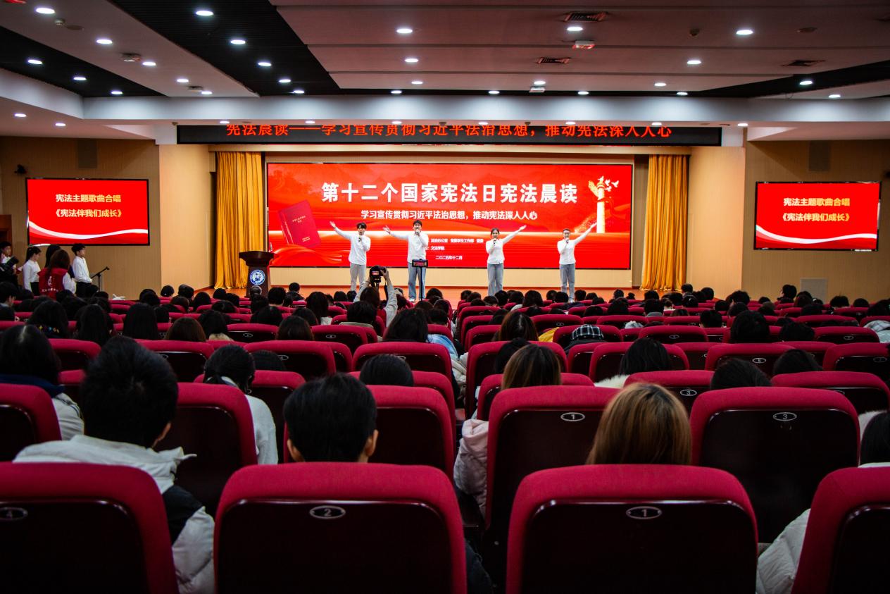 12月4日,第十二届国家宪法日“宪法晨读”活动在逸夫礼堂顺利举行。副校长张玲玲出席此次活动。