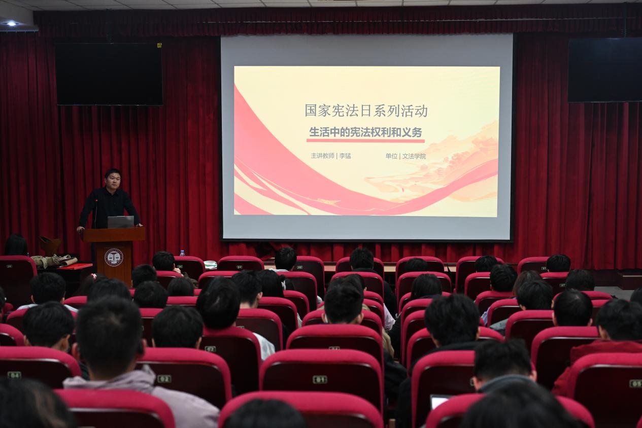 12月6日晚,“生活中的宪法权利与义务”主题讲座于文理楼142顺利举办,本次讲座由太阳成集团tyc7111cc法学系主任助理李猛博士主讲,吸引了各学院学生的积极参与。讲座以国家宪法日设立为切入点,强调宪法根本大法的最高法律效力及贯穿公民生活的重要性,围绕宪法与日常生活的关联,结合多类现实案例,系统讲解宪法通过部门法落地的路径,重点分析多个热点权利议题,阐释相关法律理念并明确公民权利边界与责任,强调大学生既是法律学习者也是法治建设参与者,此次讲座有效提升了学生依法维权与履行义务的意识。