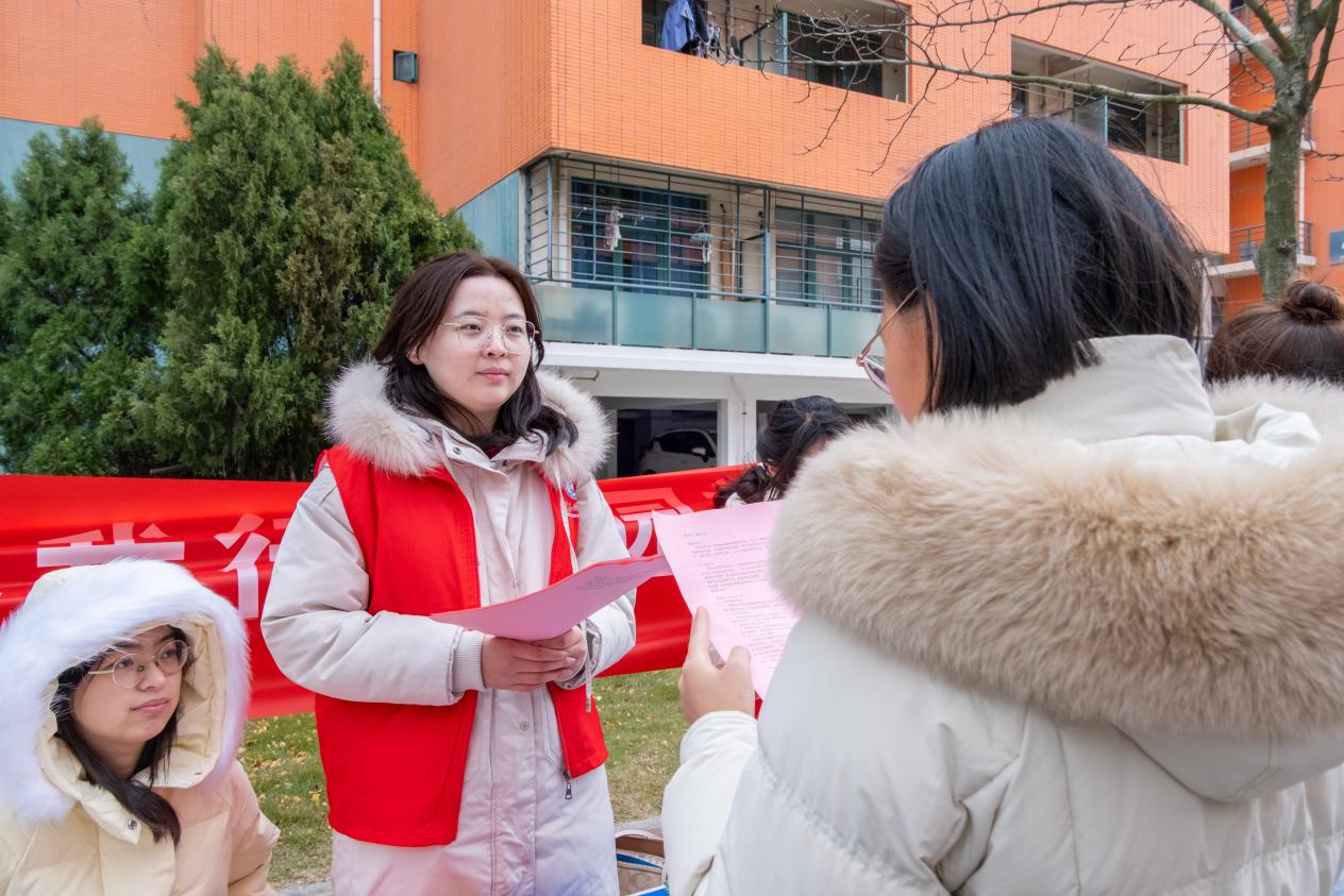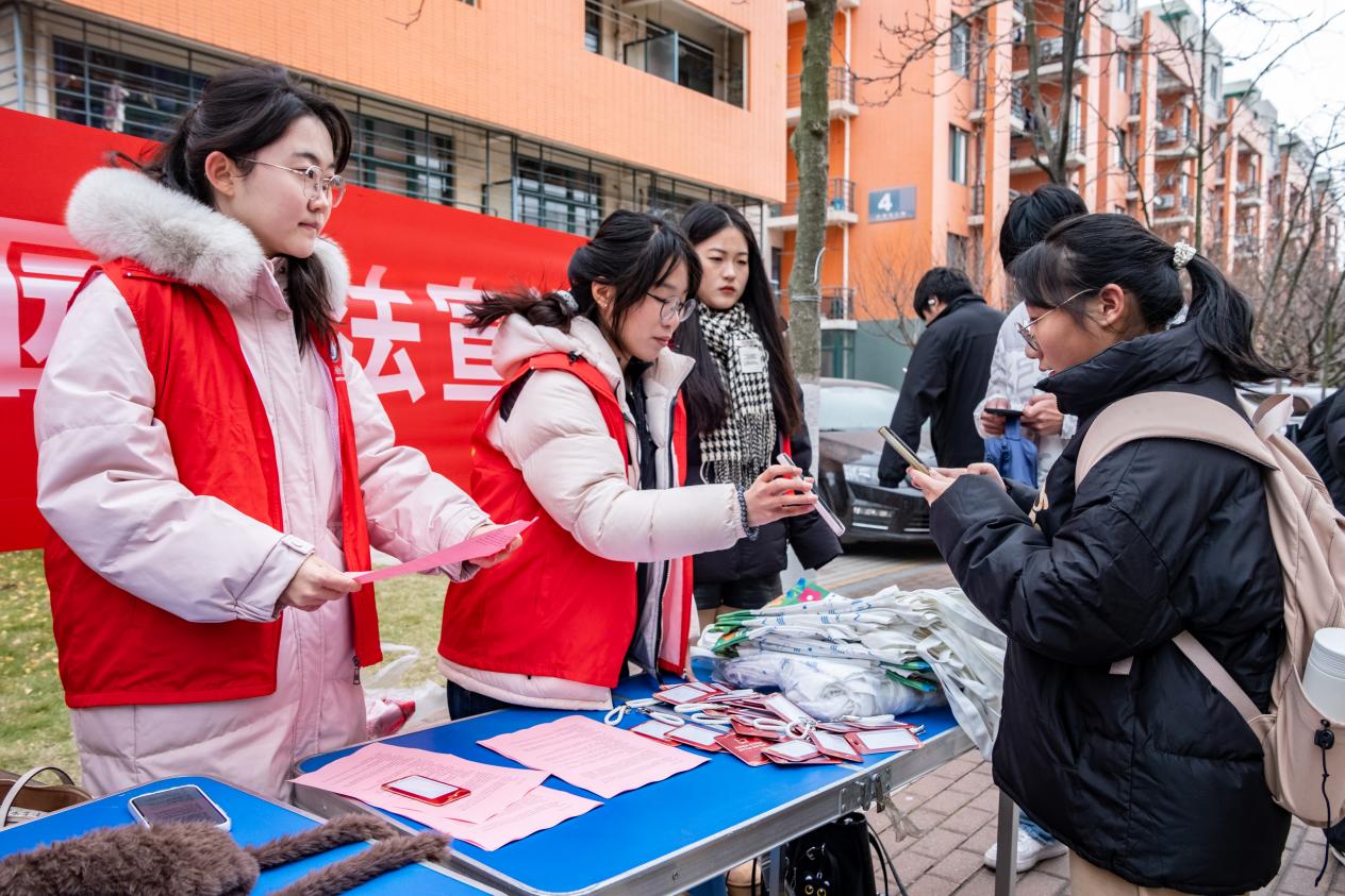 12月2日上午,正平普法协会的志愿者于玉兰苑东门路口开展宪法宣传活动,工作人员摆放宪法知识手册及相关文创礼品,核心的互动问答区涵盖国体、基本政治制度等宪法核心内容,学生们对照资料梳理知识点、聆听志愿者讲解,答对题目可获礼品。活动组织者高译文表示:“我们希望以青年喜闻乐见的方式,让法治意识成为校园文化的一部分。”2025级学生刘雪仪参与后也深有感触:“以前觉得宪法离生活很远,今天才知道它不仅规定了国家制度,也和我们的基本权利息息相关。”此次活动将宪法知识融入校园生活场景,让法治精神在校园中生动落地。