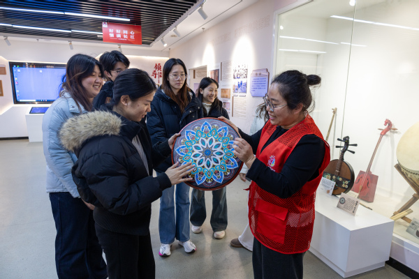 在民族器乐体验区,古筝、二胡、月琴等传统乐器依次陈列,社区工作人员为团支部成员讲解乐器的历史背景与演奏技法。团支部成员亲手尝试弹奏,切身感受民族音乐的韵律魅力。互动过程中,乐器悠扬的音色不仅展现了中华优秀传统文化的深厚底蕴,也增强了参与者对中华民族多元一体文化格局的理解和认同。
